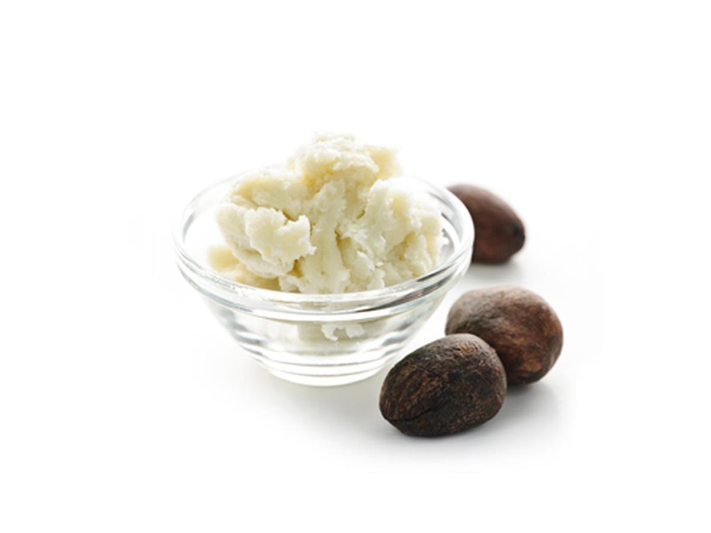 Nerafinované bambucké maslo obsahuje prírodné antioxidanty, vitamíny A, D, E, F, fytosteroly a mastné kyseliny.
