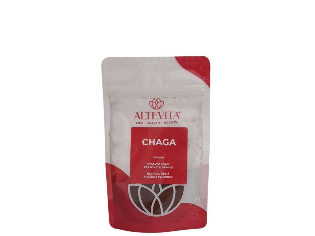 CHAGA od ALTEVITA je čistý, prírodný prášok z plodnice huby Chaga (Inonotus obliquus – Ryšavec šikmý) bez akýchkoľvek prísad, plnidiel či umelých látok. Ide o jednozložkový produkt najvyššej kvality – 100 % prášok z plodnice, nie z mycélia. Chaga je výnimočná huba, ktorá rastie prevažne na brezách v chladných severských lesoch Sibíri, severnej Európy, Kanady a Aljašky. Na rozdiel od klasických húb vytvára tmavú, uhľovitú hmotu – tzv. sklerocium – zbieranú ručne priamo z kmeňov stromov. Má stáročnú tradíciu využívania v ľudovom liečiteľstve severských a sibírskych národov, kde bola tradične pripravovaná ako čaj. Prášok je vhodný na prípravu nápoja, do smoothie alebo ako prísada do jedál.
