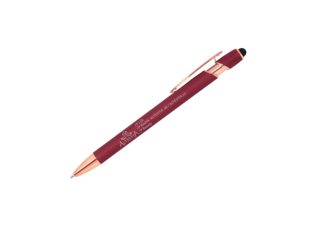 Dotykové kovové pero Alpha Soft touch s vyrezávaním z ružového zlata.