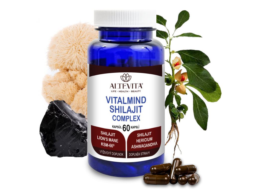 VITALMIND SHILAJIT COMPLEX je starostlivo zostavený prémiový výživový doplnok značky ALTEVITA, ktorý spája tri výnimočné prírodné suroviny – Shilajit extrakt (70%, s obsahom 70% fulvových kyselín), Hericium extrakt (Hericium erinaceus, „Lion's Mane") a Ashwagandha KSM-66® (Withania somnifera) – v jednej kapsule z rastlinnej celulózy HPMC. Produkt je určený pre dospelých, ktorí chcú obohatiť svoj každodenný jedálniček o tieto obľúbené a celosvetovo vyhľadávané prírodné suroviny.