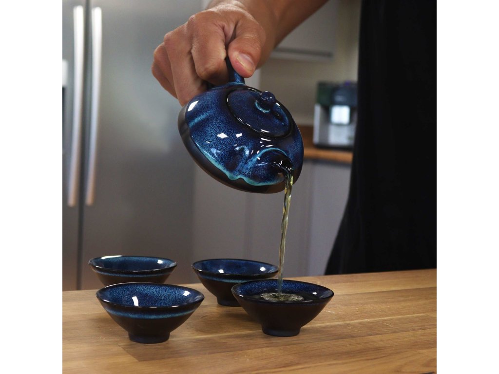 Súprava čajovej kanvice je sofistikovaný a štýlový produkt, ktorý osloví zákazníkov hľadajúcich elegantný čajový zážitok. Čajová kanvica a štyri misky z keramiky ponúkajú odolnosť a prémiový dojem.