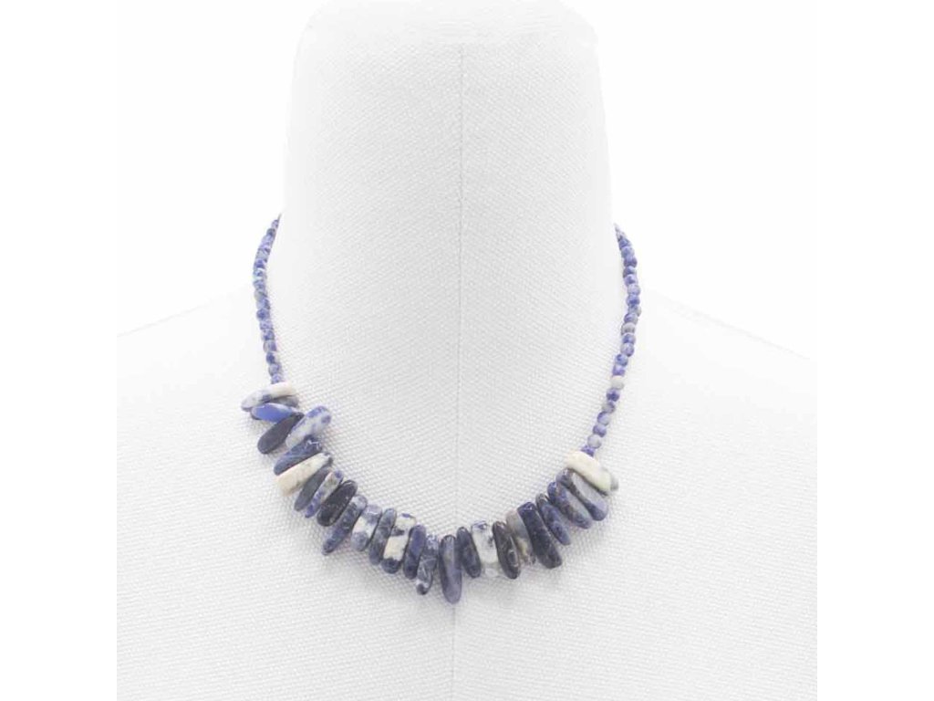 Ponorte sa do hlbokých modrých hlbín nášho náhrdelníka Sodalit. Podlhovastý sodalitový drahokam, zdobený väčším množstvom menších, okrúhlych sodalitových drahokamov, odzrkadľuje pokojné vody oceánu a podporuje mier a nadhľad.