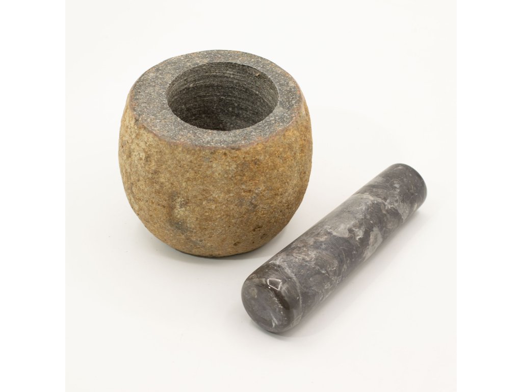 Hmotnosť a hustota riečneho kameňa ho predurčujú na ľahké každodenné používanie pri drvení byliniek, korenín či solí, pričom jeho sochársky tvar umožňuje aj využitie ako dekoratívny prvok na policiach, pracovných plochách alebo otvorených expozíciách.
