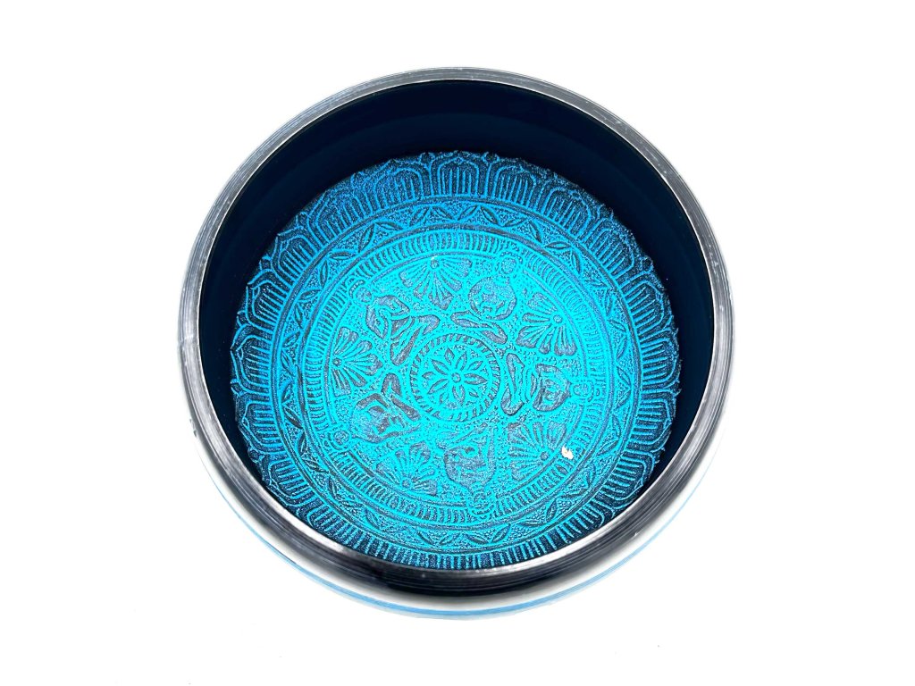 Tibetské spievajúce misy sú známe svojimi upokojujúcimi a meditačnými vlastnosťami, vďaka čomu sú cennými nástrojmi pre praktiky všímavosti. Upokojujúce vibrácie produkované touto spievajúcou misou môžu zmierniť stres a podporiť relaxáciu. Modrá Mantra Piatich Budhov predstavuje duchovné osvietenie a vyrovnanosť.