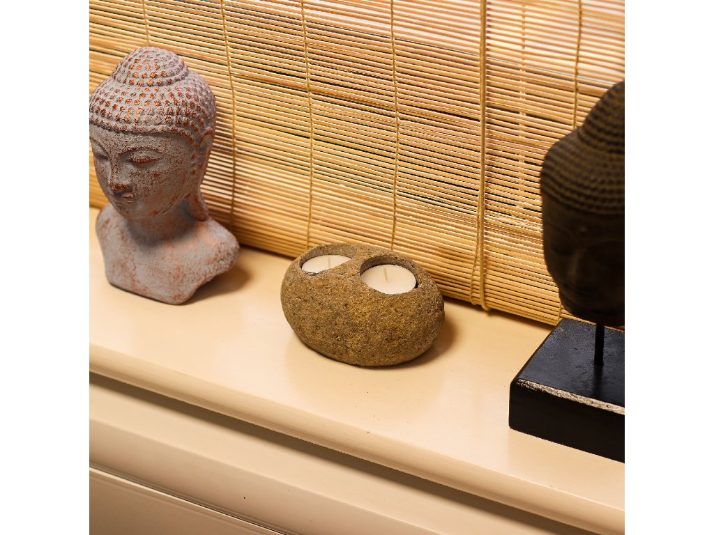 Každý kus je originál, ktorý odhaľuje prirodzenú štruktúru a farebné odtiene kameňa, z ktorého bol vytesaný. Navrhnutý na dve čajové sviečky, je ideálny na vytvorenie jemnej, upokojujúcej atmosféry – skvele sa hodí do relaxačných kútikov, wellness aranžmánov či darčekových kolekcií inšpirovaných prírodou.
