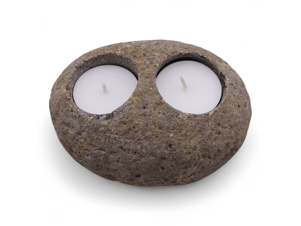 AWM Svietnik z Prírodného Riečneho Kameňa - Dve Sviečky 1ks