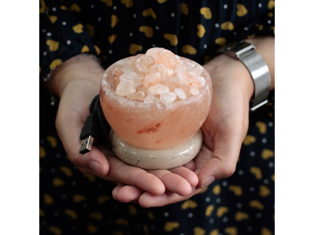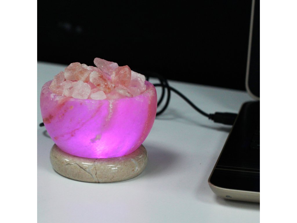 USB Soľná Lampa - Miska svieti viacerými farbami.