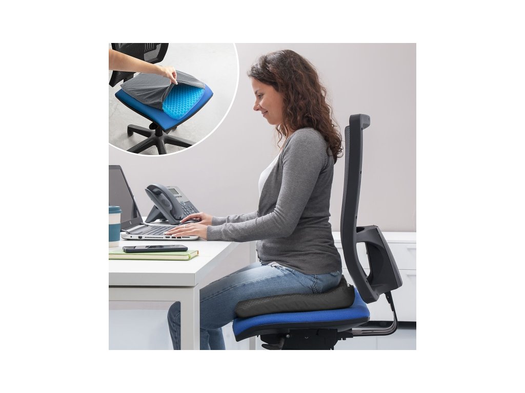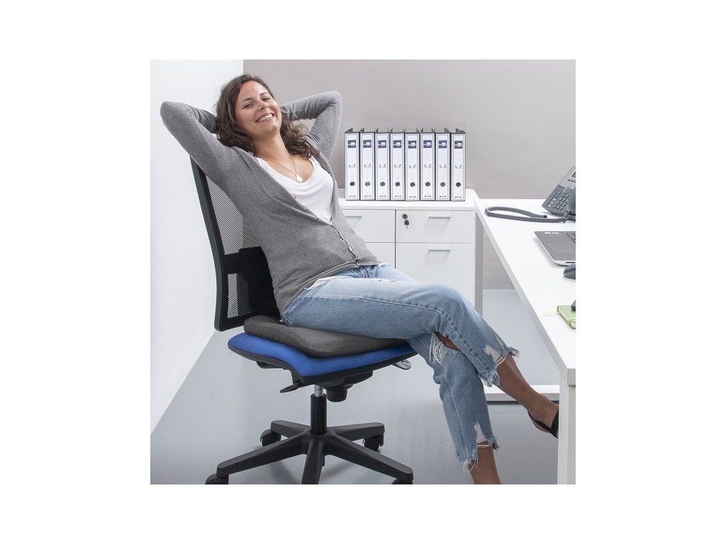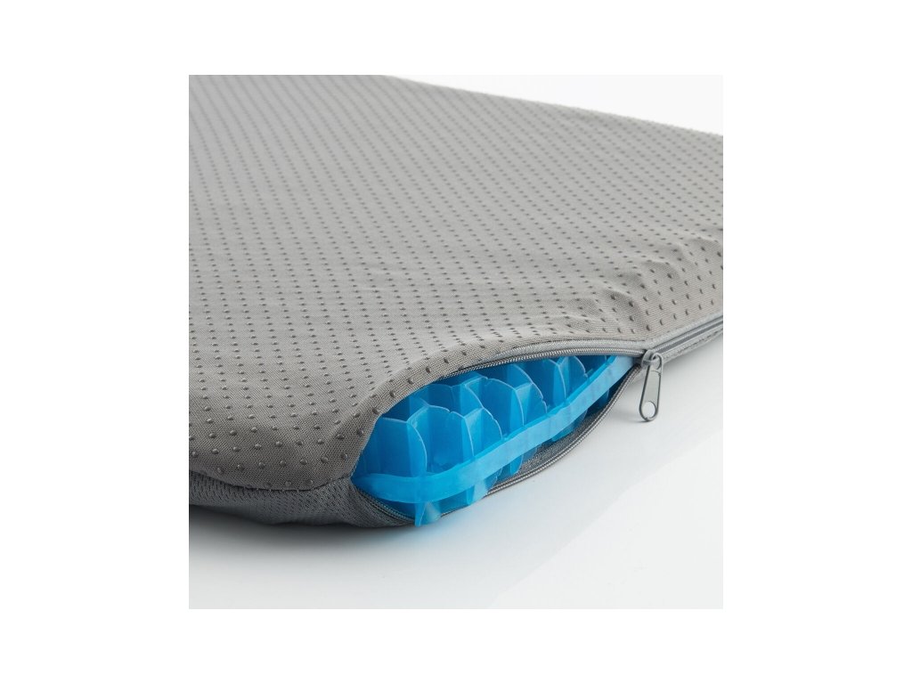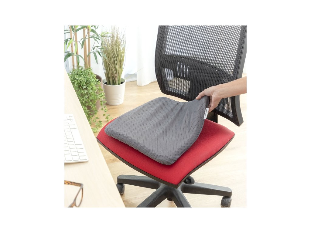 Pomáha zmierňovať bolesti chrbta a pri sedení udržiava pohodlnú a uvoľnenú polohu. Vďaka tomu, že je chladivý a priedušný, znižuje pocit tepla medzi zadkom a sedadlom a podporuje prúdenie vzduchu. Vďaka svojej veľkej elasticite a pružnosti je veľmi univerzálny a prispôsobí sa všetkým druhom stoličiek. Navyše nestráca tvar, po každom použití sa vráti do pôvodného tvaru. Odnímateľný poťah na zips uľahčuje jeho čistenie. Vankúš je dokonalý pre ľudí, ktorí trávia veľa času sedením.