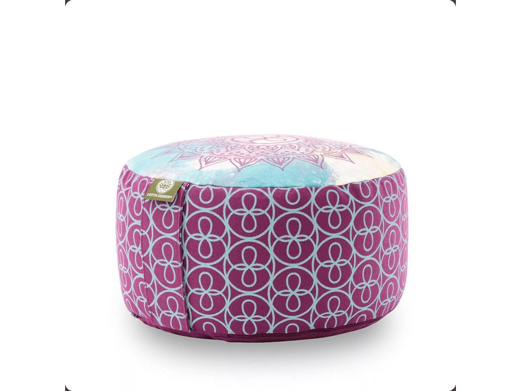 Potlačený meditačný vankúš s kvalitným odnímateľným poťahom na zips. Vnútorný vankúš so zipsom a výplňou z organických pohánkových šupiek.