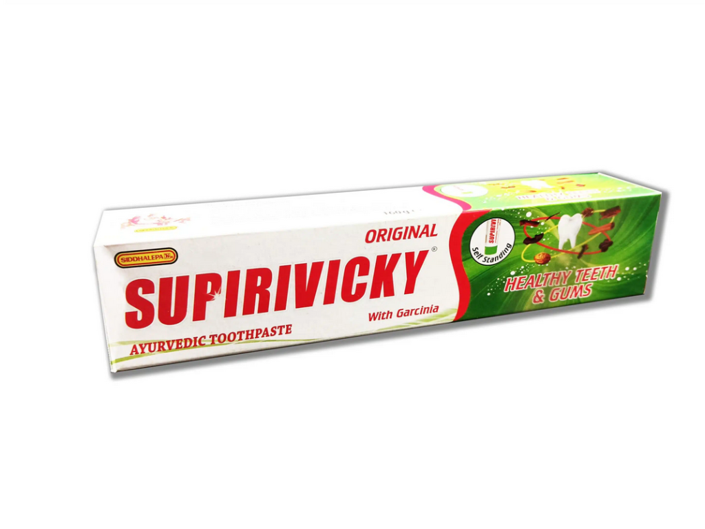 Väčšina hlavných zdravotných problémov dneška je zo stravovacích návykov. Doktori vinia konzumáciu nekvalitných potravín, mäsových produktov, cukru a rôznych nápojov, ktoré ovplyvňujú kvalitu chrupu. Ájurvédske ingrediencie, ktoré sú použité v zubnej paste Suprivicky, blahodárne pôsobia na ďasná, zuby, hrdlo a jazyk. Supirivicky udržuje zdravé ďasná, svieži dych, pomáha proti zubnému kazu, zafarbeniu zubov a odstraňuje zubný kameň. Viac než desať ájurvédskych ingrediencii bolo použité v tomto výrobku, ktorý bol výskumom vyvinutý v laboratóriách firmy Siddhalepa.