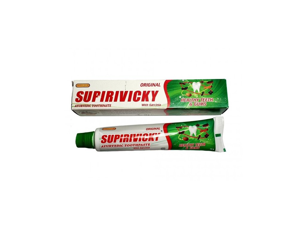 Väčšina hlavných zdravotných problémov dneška je zo stravovacích návykov. Doktori vinia konzumáciu nekvalitných potravín, mäsových produktov, cukru a rôznych nápojov, ktoré ovplyvňujú kvalitu chrupu. Ájurvédske ingrediencie, ktoré sú použité v zubnej paste Suprivicky, blahodarne pôsobia na ďasna, zuby, hrdlo a jazyk. Supirivicky udržuje zdravé ďasná, svieži dych, pomáha proti zubnému kazu, zafarbeniu zubov a odstraňuje zubný kameň. Viac než desať ájurvédskych ingrediencii bolo použité v tomto výrobku, ktorý bol výskumom vyvinutý v laboratóriách firmy Siddhalepa.