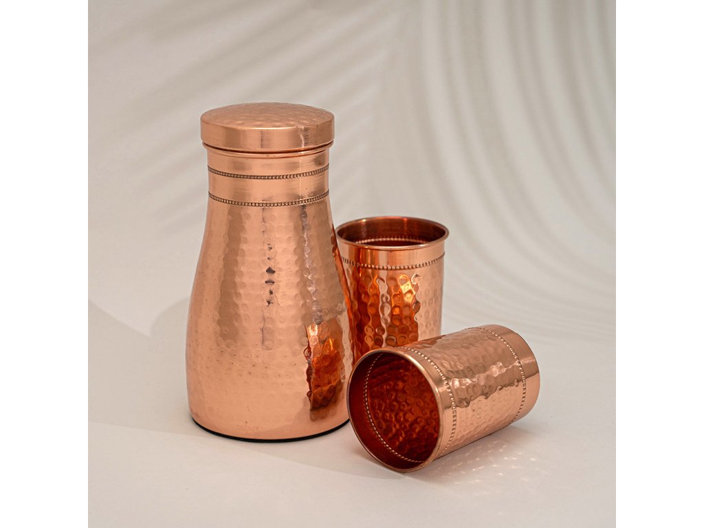 Súprava karafy z čistej medi s 2 tepanými pohármi ± 950 ml