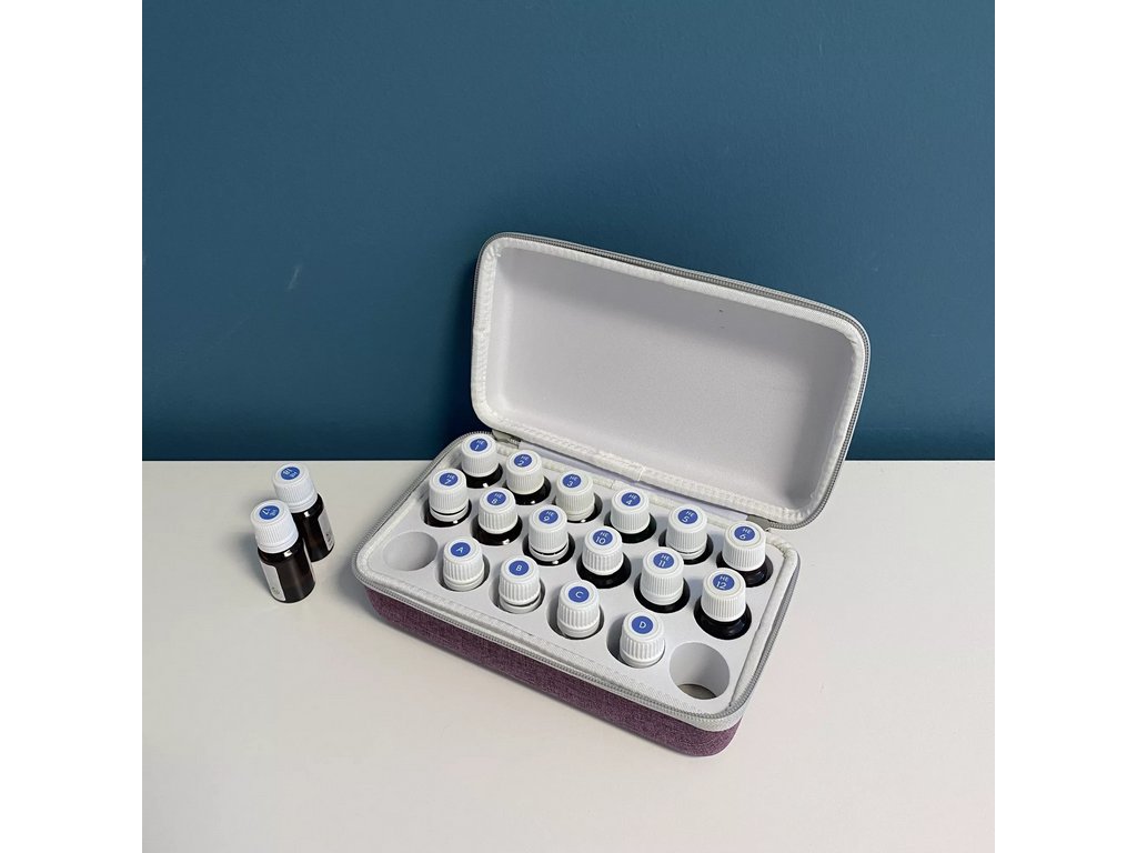 Praktický kufrík z kvalitného a odolného materiálu vám umožní mať svoje obľúbené esenciálne oleje vždy po ruke aj na cestách. Vnútro materiálu je vybavené praktickou penovou výplňou, aby boli fľaštičky bezpečne opatrené počas ciest.